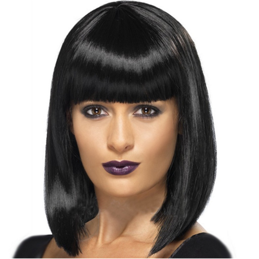 Short Staright Bob Wig Full Black Wig With Bangs For Women Fashion