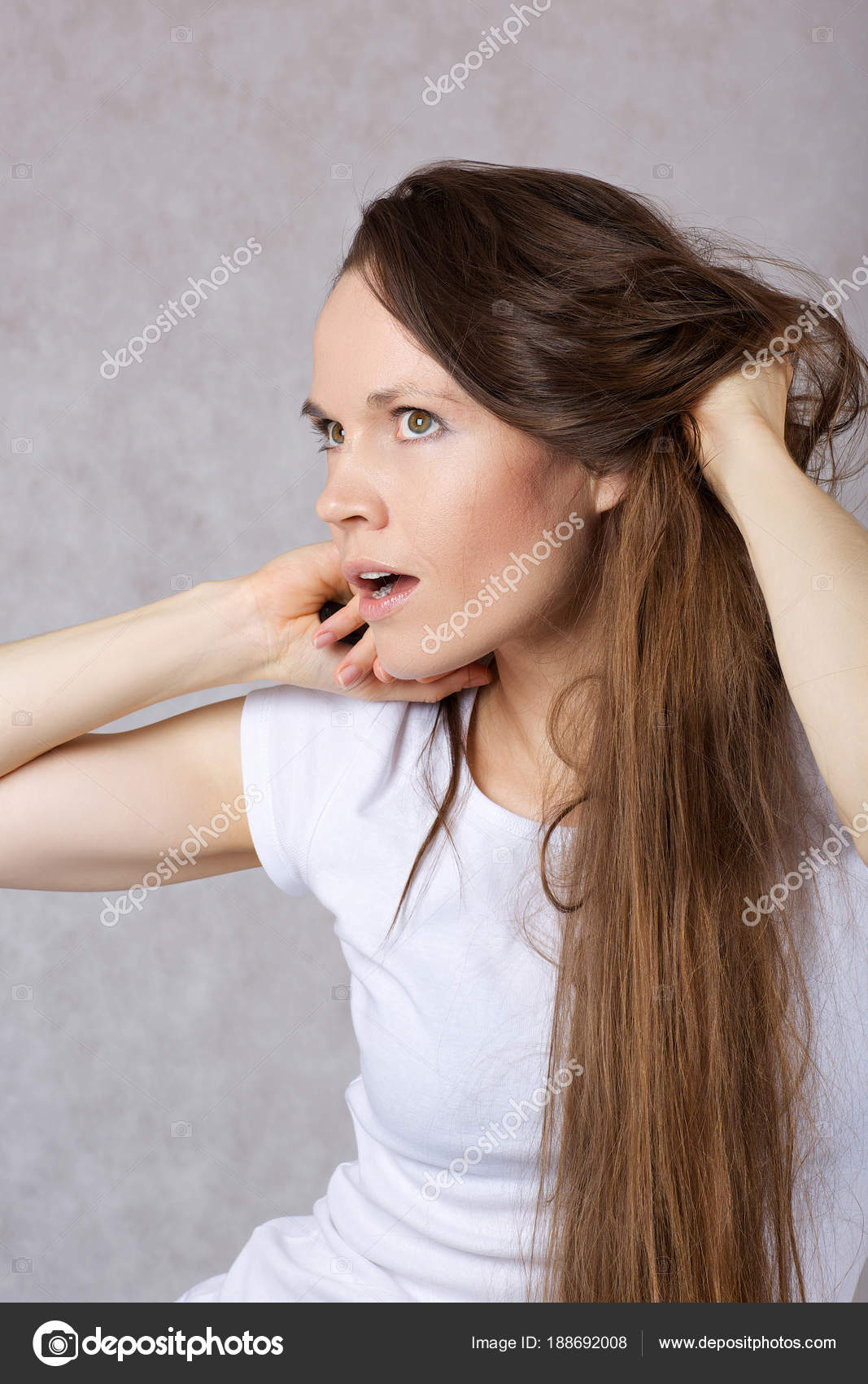 Young Lady Years Old White Shirt Long Hair Stock Photo