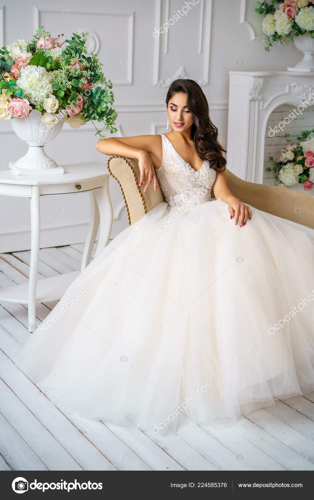 Beautiful Young Woman Wedding Dress Beautiful Makeup Hairstyle