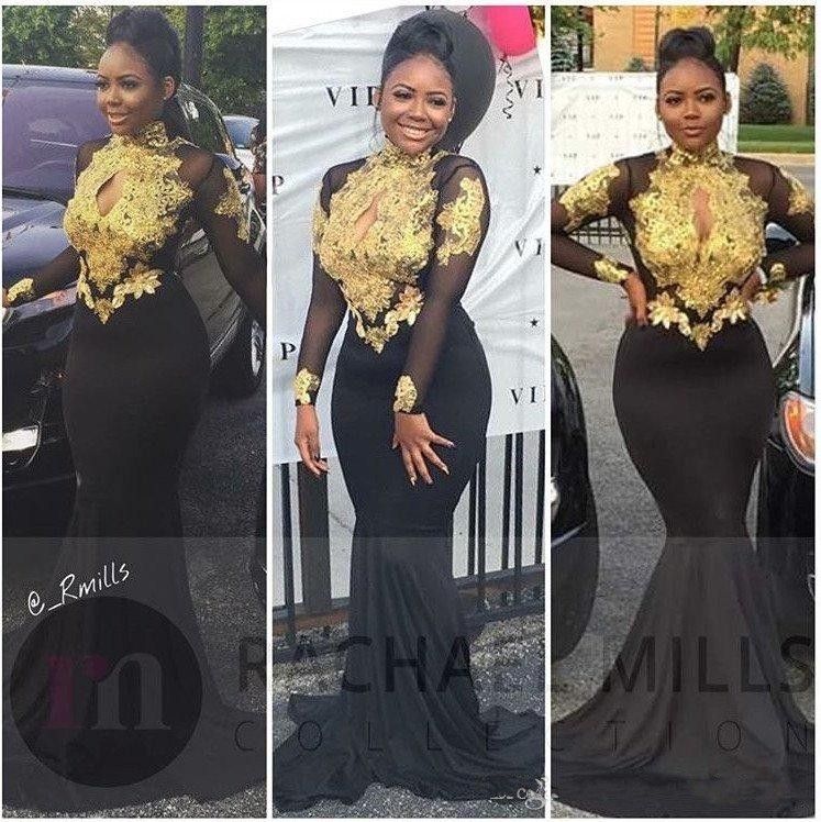 South African Black Girl Prom Dresses Mermaid High Neck Sexy Open